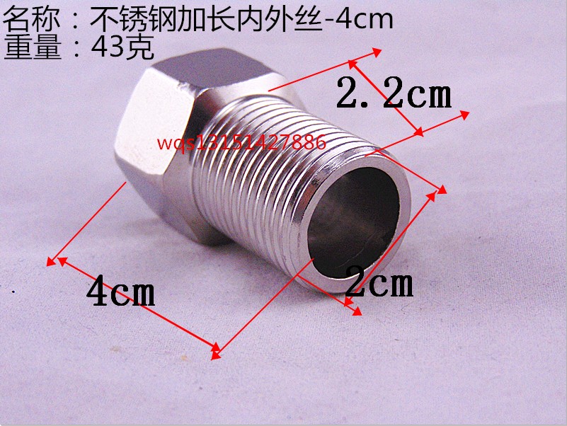 名稱:不銹鋼加長內外絲-4cm