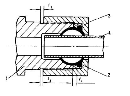 它是由接頭1、卡套2、螺帽3和管子4所組成。擰緊螺帽時,卡套受到接頭內部錐面擠壓產生變形,其刃口切入管子壁內形成一圈密封線,既能獲得可靠的密封性能,又能防止管子軸向位移。卡套接頭的密封部位包括卡套刃口嵌人管子壁上的接合面和卡套與接頭內錐面的接觸面。后者是在卡套接頭裝配后,卡套被軸向擠壓,使其擠緊在接頭的錐面上,從而形成一道密封線。
