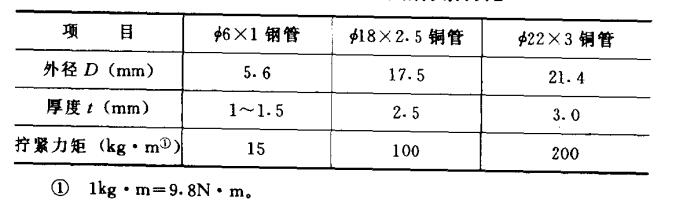 4)將管子放人接頭孔內(nèi)并頂牢圓墊圈,使用扳手(6管子用8寸,18管子用12寸,聲22管子用15寸扳手)逐步擰緊螺帽至規(guī)定力矩,使卡套嵌人管子外壁內(nèi)。